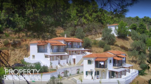 Η Property Founders διαθέτει προς πώληση ξενοδοχείο 18 δωματίων 550 τ.μ σε αγροτεμάχιο 4300τ.μ με απεριόριστη θέα στη θάλασσα στην περιοχή Αχλαδιές. Το συγκρότημα λειτουργεί την καλοκαιρινή σεζόν, πλήρως εξοπλισμένο με βαθμό αξιολόγησης από την Booking 9,3 και μπορεί να χρησιμοποιηθεί σαν δύο εξοχικές κατοικίες.