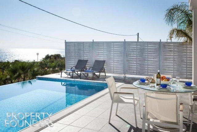 H PROPERTY FOUNDERS διαθέτει προς πώληση παραθαλάσσιο ξενοδοχείο, πλήρως λειτουργικό, στο νότιο τμήμα της Κεφαλλονιάς και συγκεκριμένα στη γραφική Σκάλα Κεφαλονιάς. Το ακίνητο βρίσκεται στην ακτογραμμή και πρόκειται για τρεις πανομοιότυπες βίλλες 120τμ έκαστην. H κάθε βίλλα είναι φουλ εξοπλισμένη και απαρτίζεται από 3 υπνοδωμάτια  εκ των οποίων τα δυο διαθέτουν δικό τους μπάνιο και σαλόνι-κουζίνα ενιαία. Επιπλέον διαθέτουν αλουμίνια, διπλά τζάμια, ηλιακό ,πρόβλεψη για εγκατάσταση για καλοριφέρ και  2 θέσεις στάθμευσης. Γενικότερα πρόκειται για μια προσεγμένη και σύγχρονη κατασκευή. Επίσης η κάθε βίλλα διαθέτει πισίνα με υπερχείλιση και καταρράκτη. Η θεά στη θάλασσα είναι πανοραμική και η απόσταση από το λιμάνι του Πόρου μόνο 6 λεπτά. Η αποδοτικότητα του ξενοδοχείου είναι ιδιαίτερα υψηλή καθώς η σεζόν διαρκεί από Απρίλη έως τέλη Οκτωβρίου. Η θέση του ακινήτου στον χάρτη είναι ενδεικτική. Για περισσότερες πληροφορίες ή για να επισκεφθείτε το ακίνητο καλέστε στο 2168009848.