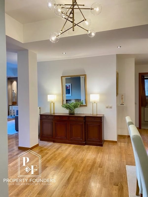 Η Property Founders διαθέτει προς Ενοικίαση ένα πολυτελώς επιπλωμένο, φωτεινό και διαμπερές οροφοδιαμέρισμα πρώτου ορόφου σε τριώροφη κατοικία στα Δικηγορικά της Βούλας. Το ακίνητο κατασκευάστηκε το 2004 και έχει ανακαινιστεί πλήρως. Έχει συνολική επιφάνεια 170 τ.μ. και διαθέτει επιπλέον κλειστό ισόγειο χώρο στάθμευσης και αποθήκη συνολικής επιφάνειας 24 τ.μ. Αποτελείται από δύο σαλόνια – ένα διαμορφωμένο ως καθιστικό τηλεόρασης και το άλλο με τζάκι – καθώς και ενιαία τραπεζαρία. Διαθέτει ξεχωριστή κουζίνα πλήρως εξοπλισμένη με ηλεκτρικές συσκευές , τρία ευρύχωρα διπλά υπνοδωμάτια, εκ των οποίων το ένα είναι master, καθώς και ένα επιπλέον μονό υπνοδωμάτιο. Το ακίνητο περιλαμβάνει επίσης δύο μπάνια, ένα επιπλέον WC, laundry room και χώρο λινοθήκης/γκαρνταρόμπας. Είναι εξοπλισμένο με boiler, σύστημα συναγερμού, αυτόνομη θέρμανση, δρύινα παρκέ υψηλής αντοχής, κλιματιστικά, ηλεκτρικές τέντες και ηλεκτρικά ρολά σε όλα τα παράθυρα και τις μπαλκονόπορτες, εξασφαλίζοντας μέγιστη άνεση και ασφάλεια.