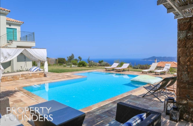 Η Property Founders διαθέτει προς πώληση συγκρότημα  με 4 βίλες με πανοραμική θέα θάλασσα στον λόφο πάνω από την χώρα της Σκιάθου. Είναι κατασκευασμένες το 2007 και η κάθε βίλλα είναι αυτόνομη με δική της πισινά και κήπο.