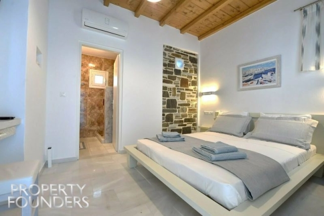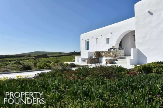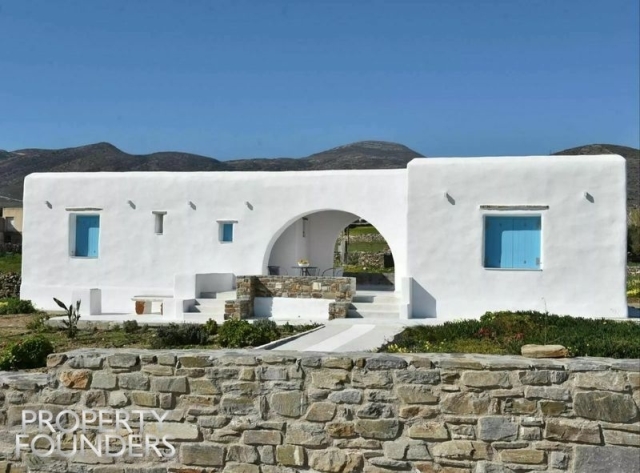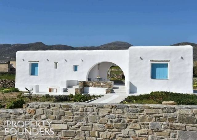 Paros, Marpissa, Villa For Sale, 90 sq.m., In Plot 5800 sq.m., Property Status: Very Good, Floor: Ground floor, 1 Level(s), 2 Bedrooms 1 Kitchen(s), 3 Bathroom(s), Heating: Autonomous - Electricity, View: Mountain View + Sea view, Building Year: 2017, Energy Certificate: E, 1 parking(s), Floor type: Marble, Type of doors: Aluminum, Features: Fireplace, Double Glazed Windows, Balconies, No shared expenses, Airy, Roadside, Bright, On Corner, AirConditioning, Solar water system, Price: 650.000€. PROPERTY FOUNDERS, Tel: 2168009848, email: [email protected]