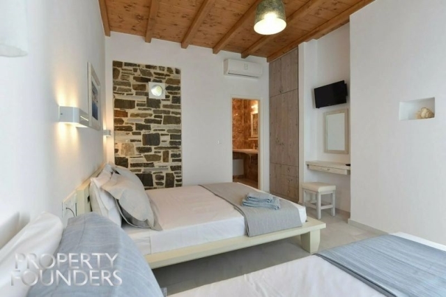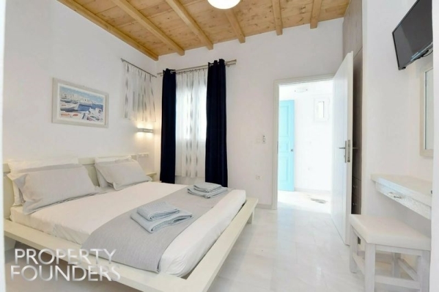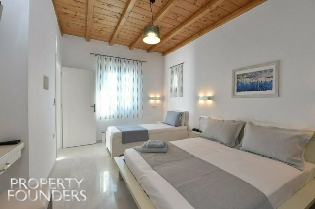 Property Founders is pleased to offer  for sale a traditional villa, a detached house of 90 sq.m. in Cycladic style in the village of Marpissa of Paros. The villa is built on a plot of 5,800 sq.m. with the possibility of additional construction of 210 sq.m. It consists of a single living room with kitchen and independent bathroom, two master bedrooms (one triple and one double) with independent bathrooms each. Excellent garden with olives, pomegranates and various kinds of flowers. It has a also a licence for a swimming pool and bbq in this wonderful land of almost 6 acres. It is located 200 m from the picturesque village of Marpissa (shops, supermarket), as well as within walking distance of the island's famous beaches. The location of the property on the map is indicative.