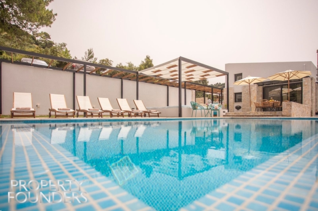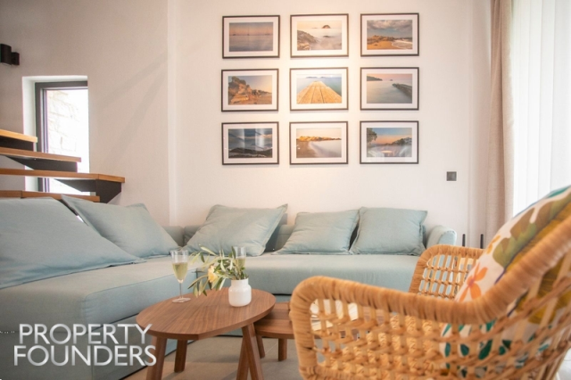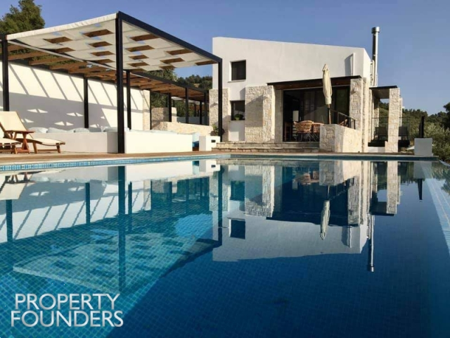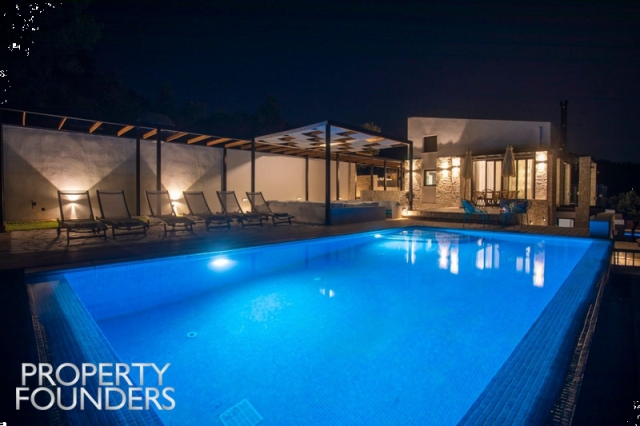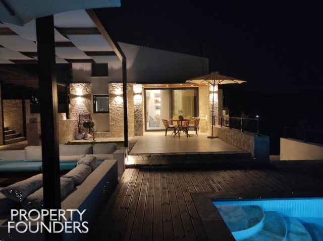 Property Founders is pleased to offer for sale a modern villa in a residential complex with 3 bedrooms. It is located on a green hill with an unlimited sea view. It consists of a single kitchen with a living room and a fireplace. Direct access to the garden with pool and bbq. For more information or to visit the property please call 2168009848, 6943227777