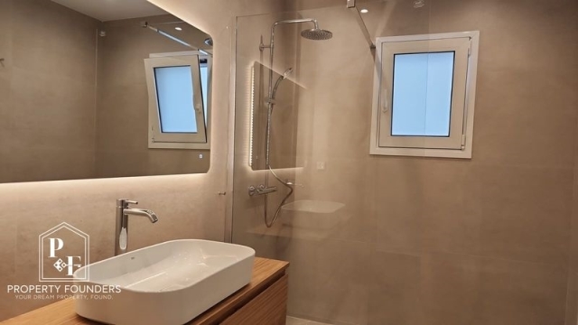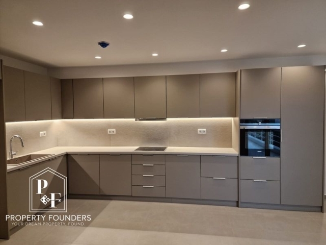 PROPERTY FOUNDERS is delighted to offer EXCLUSIVELY for sale in the heart of Glyfada a bright 135sqm corner apartment situated on the 3rd floor, newly and fully refurbished in 2024. It consists of 3 bedrooms, one of which is a master bedroom ensuite with an open plan walk-in closet, 2 bathrooms, WC, kitchen, living and dining room as well as two storage rooms for multi-purpose use. The property offers a spacious interconnected all-around balcony with direct access from/to all main rooms (kitchen, living -dining room, all 3 bedrooms) overlooking Glyfada cityscape and Voula Panorama skyline. Renovated in 2024, with architectural aesthetics and design in mind by incorporating high quality materials and fittings, such as interior tile floorings by PORCELANA, recessed LED spotlights, plaster board KNAUF system with hidden dimmable LED lights across the living room and master bedroom. Additional features include newly installed energy efficient double and triple glazed windows, balcony doors and shutters ALUMIL, Austrian-made wardrobes and kitchen cupboards by EGGER. Moreover, this refurbishment has overhauled also the following: security entrance door, built-in kitchen electrical appliances by SIEMENS, kitchen faucet by FRANKE, bathroom fixtures by IDEAL STANDARD, new electrical installation throughout fitted with a three-phase electrical panel HAGER, security alarm system SIGMA, new radiant heaters Austrian-made VOGEL AND NOOT, with newly installed condensing BOSCH boiler. Pre-installation of air conditioning units and solar water system have been established. For more information, please contact us on 2168009848.