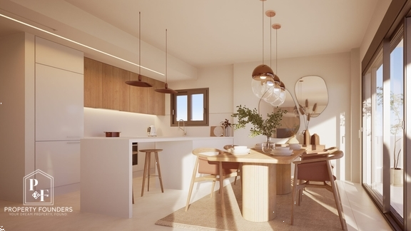 Property Founders is pleased to offer for sale in Alimos near the metro station an under construction 5th floor apartment of 105 sq m. The house consists of 3 bedrooms, one master, large living room leading to the 35 sq m terrace with a view of the cityscape and Hymettus. The heating is with a heat pump, triple energy solar, covered parking space and underground storage of 16 sq m. The property is complemented by photovoltaic systems to reduce expenses in the common areas of the building. An excellent opportunity to purchase a property in the popular suburb close to the market, schools and most importantly the metro. The location of the property on the map is indicative.