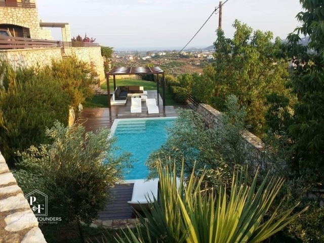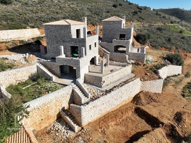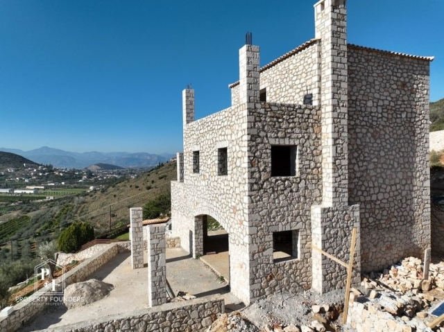 Nafplio, Lefkakia, Villa For Sale, 220 sq.m., In Plot 1100 sq.m., Property Status: under construction, Floor: Ground floor, 3 Level(s), 4 Bedrooms (1 Master), 1 Kitchen(s), 2 Bathroom(s), 1 WC, Heating: Personal - Fan Coil, View: Sea view, Building Year: 2025, Energy Certificate: A, 4 parking(s), Type of doors: Aluminum, Features: Security door, Storage room, Fireplace (2), Internal Staircase, Triple Glazed Windows, Window Screens, Balconies, Pets Allowed, For Investment, Stonehouse, Traditional house, Luxury, Mansion, Roadside, Bright, Swimming pool, Back yard (Garden), New Construction, Holiday Home, Price: 750.000€. PROPERTY FOUNDERS, Tel: 2168009848, email: [email protected]
