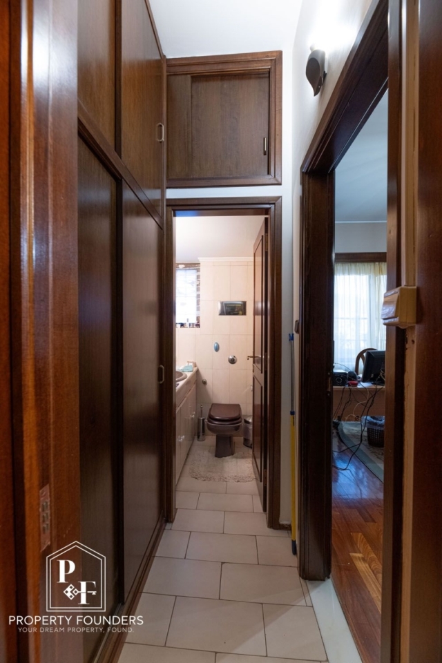 Property Founders is pleased to offer for sale a top 4th floor-through apartment of 211 sq m. with large perimeter verandas. The house needs renovation to be transformed into one or even 2 modern apartments near the Glyfada Golf Course. The property now consists of 3 bedrooms, a large living room with openings leading to the terrace of the house overlooking Hymettus and a little of the sea. It has a large independent kitchen with fireplace, solar water heater, elevator, while the heating of the building is autonomous with oil. View of Hymettus and from the back balcony there is a view of the sea. 2 parking spaces complete this promising property that is worth seeing. Shared terrace with built-in BBQ and storage room (sink and installation for a refrigerator). Next to the Golf Course, the Glyfada market and the sea. There is a floor plan available to check the posibility to divide it to 2 or three apartments. The location of the property on the map is indicative.