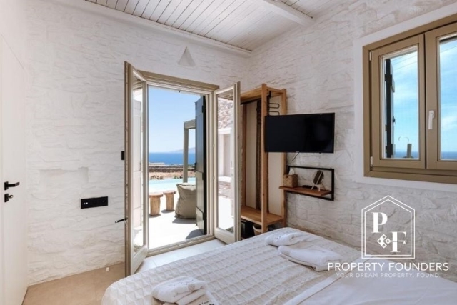 Kythnos, Villa For Sale, 350 sq.m., In Plot 4300 sq.m., Property Status: Amazing, 2 Level(s), 4 Bedrooms 1 Kitchen(s), 2 Bathroom(s), Heating: Autonomous, Building Year: 2024, Energy Certificate: A, 1 parking(s), Floor type: Tiles, Type of doors: Wooden, Features: Security door, Security alarm, CCTV, Storage room, Fireplace, Cable TV, Internet Line, Electric Appliances, Internal Staircase, Double Glazed Windows, Window Screens, BBQ, For Investment, Stonehouse, Luxury, Bright, AirConditioning, Solar water system, Boiler, Swimming pool, Back yard (Garden), Holiday Home, Distance from: Seaside (m): 100, Price: 1.600.000€. PROPERTY FOUNDERS, Tel: 2168009848, email: [email protected]