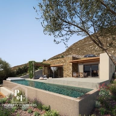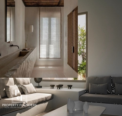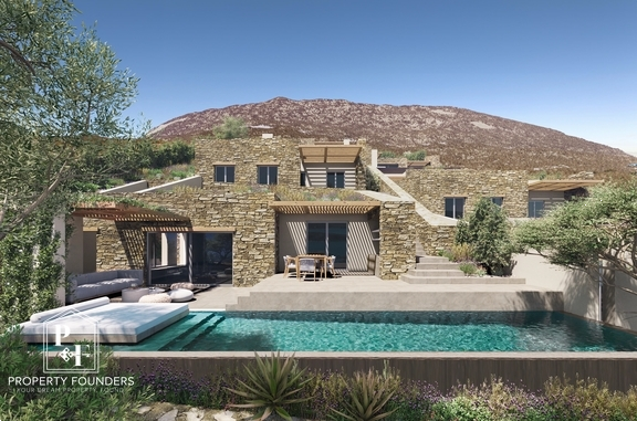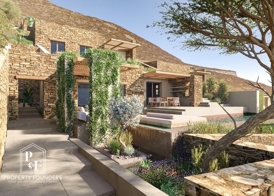 Property Founders is pleased to  offer for sale an iconic 295 sq m villa in the bay of Agios Georgios. Here, timeless Cycladic charm meets sophisticated modern living, in this under-construction project elegantly positioned on the natural slope of the bay of Agios Georgios. The villa with panoramic views of the Aegean Sea and the island of Despotiko with a southwest orientation, while being perfectly protected from the northerly winds - just a 2-minute drive from the beach. Designed by an award-winning architectural firm, this characteristic Cycladic residence extends on a private plot of 500 sq m, with unobstructed views of the sea with an infinity pool reflecting in the lush Mediterranean landscape. In this complex of four residences, the two-level residences are carefully integrated into the terrain using cave architecture, effortlessly blending with the natural beauty of the island. From this exceptional villa, the resident enjoys a breathtaking view of the Aegean sunset, from the veranda with shady pergolas oriented for optimal sun, sea and breeze, elegant natural materials and large openings for immersive indoor-outdoor living, ideal for families seeking barefoot luxury, privacy and a strong connection to nature. This is more than a home - it is a timeless retreat for unforgettable moments. Limited availability in this piece of Cycladic paradise. For more information, call us today at 2168009848-6951951280.