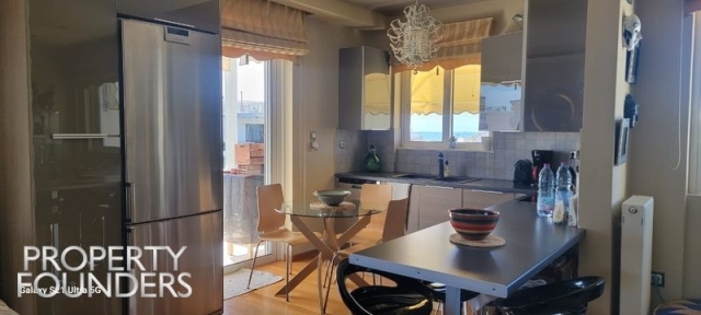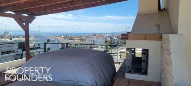 Property Founders is pleased to offer for sale in Ano Glyfada, a 4th floor penthouse of 125 sq.m., with private use of a roof top of 60 sq.m. with bbq and sea view. The residence consists of 3 bedrooms (1 Master with shower), a single living-dining room with a fireplace and an open kitchen with built-in appliances, 2 bathrooms, 1 wc, 3 air conditioners, an alarm and many extras. A private construction with oak floors in all areas, hidden lighting, sea view from the roof top and the living room, closed parking space 14 sq.m. and basement warehouse of 10 sq.m. In a very quiet neighborhood, close to public transport, market and just 5 minutes from the Center of Glyfada. Next to the market and schools. The location of the property on the map is indicative.