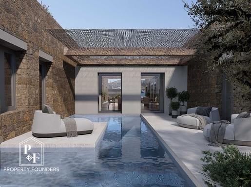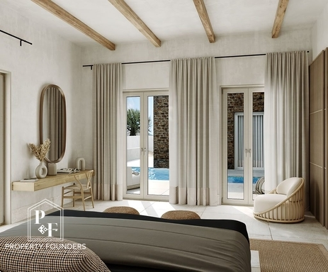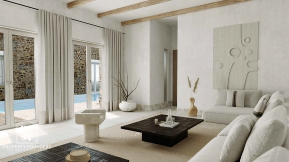 Property Founders is proud to present an iconic villa of 300 sqm on the island of Antiparos — a perfect harmony of modern sophistication and authentic local architecture. Thoughtfully designed to blend with its idyllic natural surroundings, this exceptional residence represents a rare investment opportunity in one of the Aegean’s most coveted destinations. Nestled in the picturesque bay of Agios Georgios, Villa Oniro offers a tranquil retreat with panoramic views over the sea and towards the ancient island of Despotiko. It is an invitation to invest in a legacy of privileged island living, where unspoiled landscapes and exclusivity meet. Combining traditional stone craftsmanship with contemporary design, Villa Oniro showcases refined finishes, radiating rustic charm and effortless luxury in every detail.