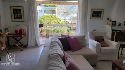 Property Founders is pleased to offer for Rent in the Karvela area of ​​Ano Glyfada a 3rd floor apartment of 130 sq m. with mountain and sea views. The house was built in 2000 with luxurious materials and consists of a large living room with the kitchen discreetly at the end, all on the facade of the house with mountain views. It consists of 3 bedrooms, bathroom, wc large verandas in front and back with sea views. The heating of the property is autonomous with oil, while it has a large elevator, security cameras in the building and an alarm in the apartment itself. Unfurnished. The location of the property on the map is indicative.