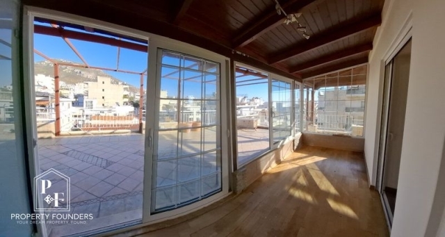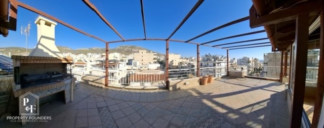 Property Founders is pleased to offer for sale 3rd - 4th floor maisonette 132 sq.m. in Ano Glyfada. This is the top floor of a three-storey house and consists of 3 bedrooms, office, 2 bathrooms, 70 sq.m. terrace with BBQ and panoramic mountain and sea views. It has oak floors and marble, A/C with natural gas, fireplace, security door, alarm, air conditioning, parking and storage room. It is located in a quiet area of ​​Ano Glyfada, very close to the market and transportation.