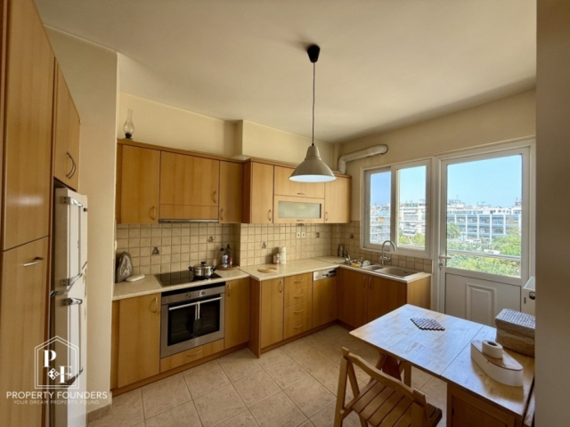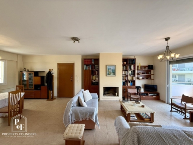 PROPERTY FOUNDERS has for SALE in the area of KALAMAKI-ALIMOS an excellent 3rd floor apartment. Apartment 118 sq.m., 3rd floor, 3 bedrooms, built in 2007. It consists of a spacious living room with fireplace, dining area, open plan kitchen, 1 bathroom and WC which can easily be converted into a second bathroom. It has a security door, independent oil heating, video intercom, alarm, elevator, tiled floors, double glazed windows with screens, and large terraces with awnings and beautiful open views and a storage room . Ιt has an underground parking space.  It is located in an excellent area, open streets and with easy parking . It is  200 meters from the sea, very close to all means of public transport. Ideal for a family but also for investment. For more information and to make an appointment, please call 2168009848 / 6951942099 / 6948367586.