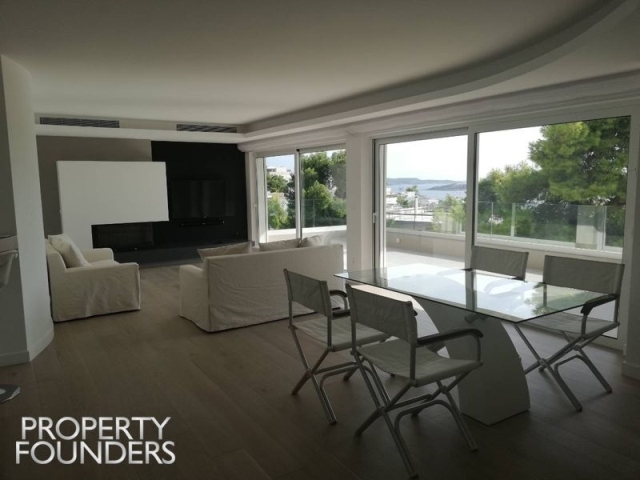 Property Founders is pleased to offer for rent this spectacular,  167sqm residential apartment on the 2nd floor with full sea and beach views in the sought after area of Vouliagmeni. It features 3 spacious master bedrooms en-suite, open plan contemporary kitchen with Miele electrical appliances, dining and living area, and extended terraces overlooking lush green and deep blue.