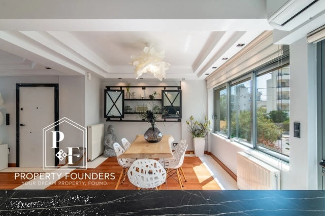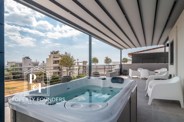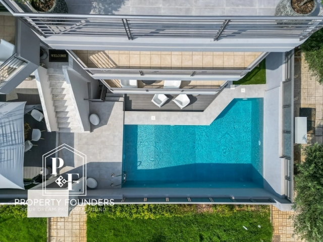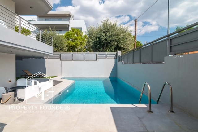 Property Founders is pleased to offer for rent a unique detached maisonette with a swimming pool with a total area of ​​270sq.m. It consists of 4 bedrooms, quite spacious, 2 bathrooms, large kitchen with maximum capacity due to the provision of many storage spaces and cupboards, large living room with fireplace. In the basement there is a massage room and a large play room and a parking space and it has an elevator for all floors. The garden with the pool is meticulous with special aesthetics and many plants. Very close to the market of Glyfada and the sea. To visit it call us today at 2168009848, 6943227777
