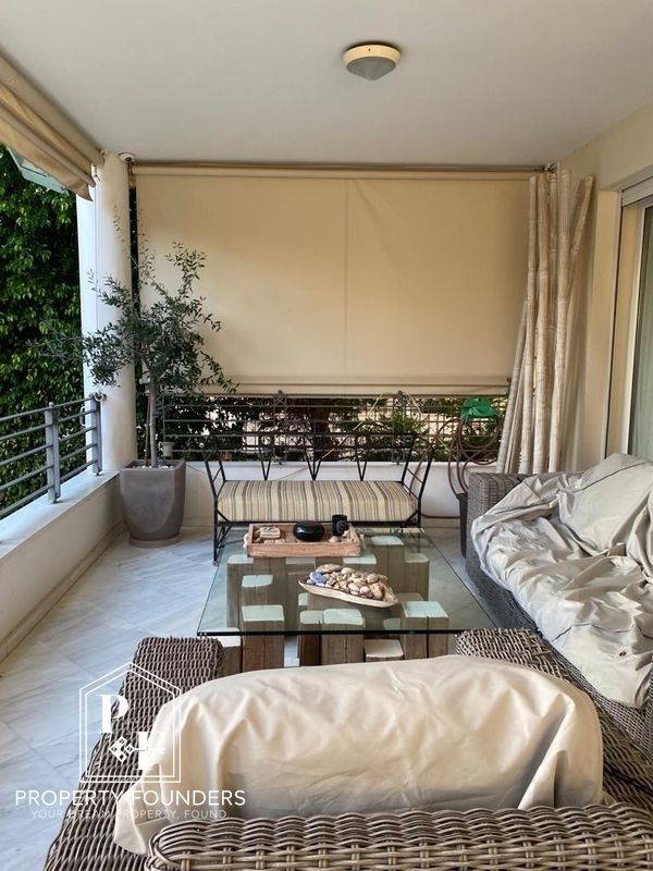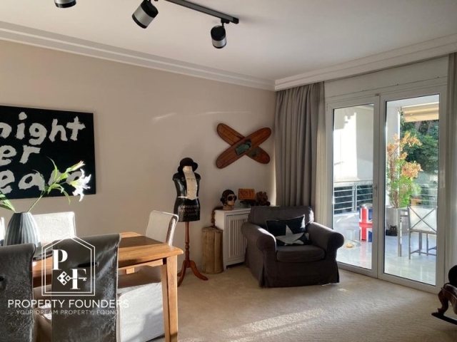 Property Founders is pleased to offer for sale a wonderful ground floor apartment in the heart of Vouliagmeni. It consists of 2 bedrooms, a spacious living room with fireplace and an independent kitchen. The apartment has large verandas, excellent quality marble in the reception areas and wooden floors in the bedrooms. It has parking, storage and a large garden with a shared swimming pool. For more information or to visit the property please call 2168009848, 6943227777