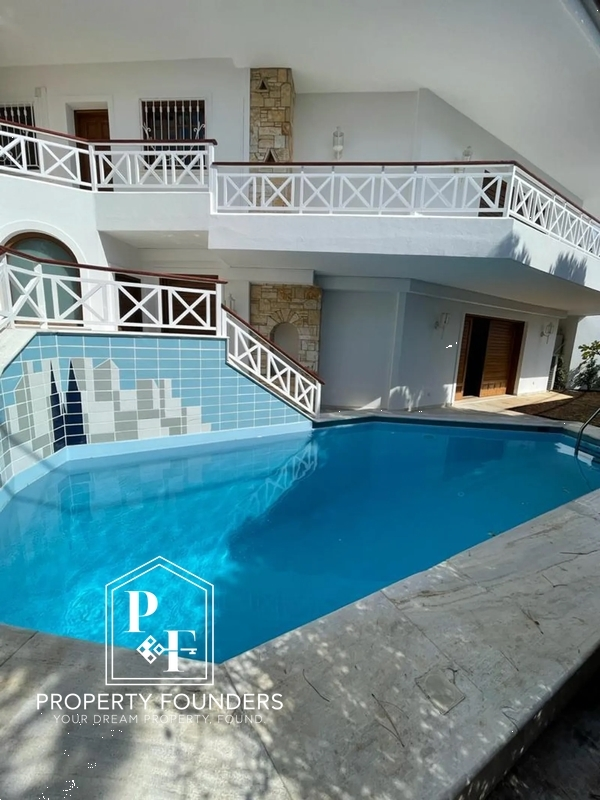 Voula, Panorama, Villa For Rent, 700 sq.m., Property Status: Amazing, Floor: Ground floor, 3 Level(s), 5 Bedrooms (2 Master), 1 Kitchen(s), 5 Bathroom(s), 1 WC, Heating: Autonomous - Petrol, View: Sea view, Building Year: 1995, Energy Certificate: C, 3 parking(s), Floor type: Wooden floors + Marble, Type of doors: Aluminium and Wooden frames, Features: Security door, Security alarm, CCTV, Storage room, Fireplace, Jacuzzi, Cable TV, Internet Line, Electric Appliances, Internal Staircase, Double Glazed Windows, Window Screens, Balconies, BBQ, Pets Allowed, Luxury, Mansion, Airy, Roadside, Bright, On Corner, AirConditioning, Solar water system, Boiler, Trees, Swimming pool, Back yard (Garden), Painted, Renovated, Distance from: Airport (m): 21000, Seaside (m): 5000, Price: 8.000€. PROPERTY FOUNDERS, Tel: 2168009848, email: [email protected]