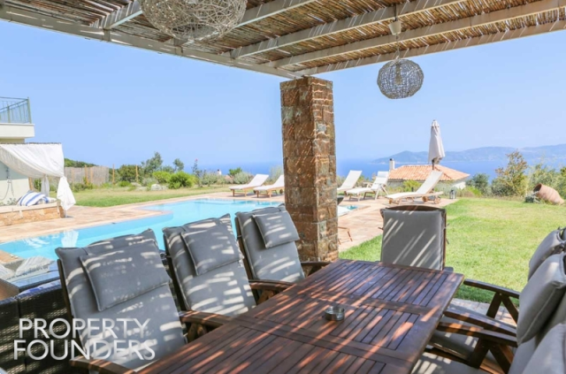 Property Founders is pleased to offer for sale a unique residence with panoramic sea views on the hill above the town of Skiathos. It was built in 2007 and it consists of 4 luxury homes, where each villa is autonomous with its own pool and garden. For more information or to visit the property please call 2168009848, 6943227777