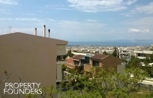 Property Founders is pleased to offer for sale a unique 3-level house in Aigli of Glyfada. It has a large square plot while each floor is about 140 sq.m. It has an underground car park with an apartment that can be used as a guest house or maid's room. The ground floor is unfinished and has a 3 bedrooms living room with fireplace and direct access to the garden. Wonderful corner duplex with unlimited view to the Saronic Gulf. For more information or to visit the property please call 2168009848, 6943227777