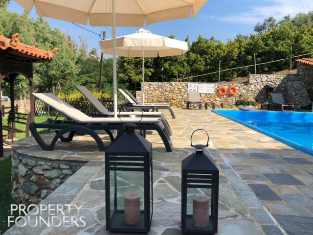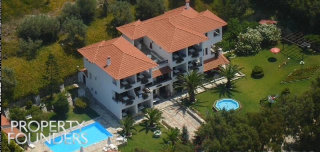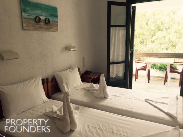 Property Founders is pleased to offer for sale a 548sq.m. hotel on a plot of approximately 7,000sq.m. with twelve double rooms, two triples and two quadruple rooms. It has a large swimming pool, reception area, service room and laundry room. All rooms are newly renovated and have comfortable bathrooms with new kitchen cabinets, sinks and breakfast appliances, new electric refrigerators, air conditioning units and plasma TVs. For more information or to visit the property please call 2168009848, 6943227777