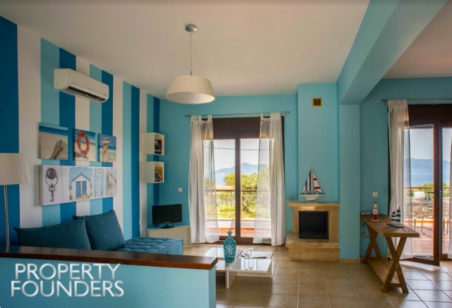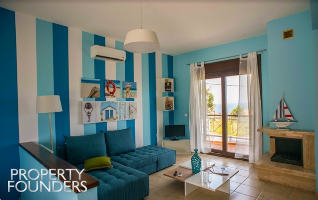 Sporades-Skiathos, Xanemos, Maisonette For Sale, 95 sq.m., In Plot 600 sq.m., Property Status: Very Good, Floor: Ground floor, 2 Level(s), 2 Bedrooms 1 Kitchen(s), 1 Bathroom(s), 1 WC, Heating: Autonomous - Electricity, View: Sea view, Building Year: 2012, Energy Certificate: D, 1 parking(s), Type of doors: Aluminum, Features: Security door, Fireplace, Internet Line, Internal Staircase, Double Glazed Windows, Balconies, Pets Allowed, For Investment, Furnished, Luxury, Airy, Roadside, Bright, On Corner, AirConditioning, Swimming pool, Back yard (Garden), Painted, Short Term Lease, Distance from: Airport (m): 1500, Seaside (m): 600, Price: 290.000€. PROPERTY FOUNDERS, Tel: 2168009848, email: [email protected]