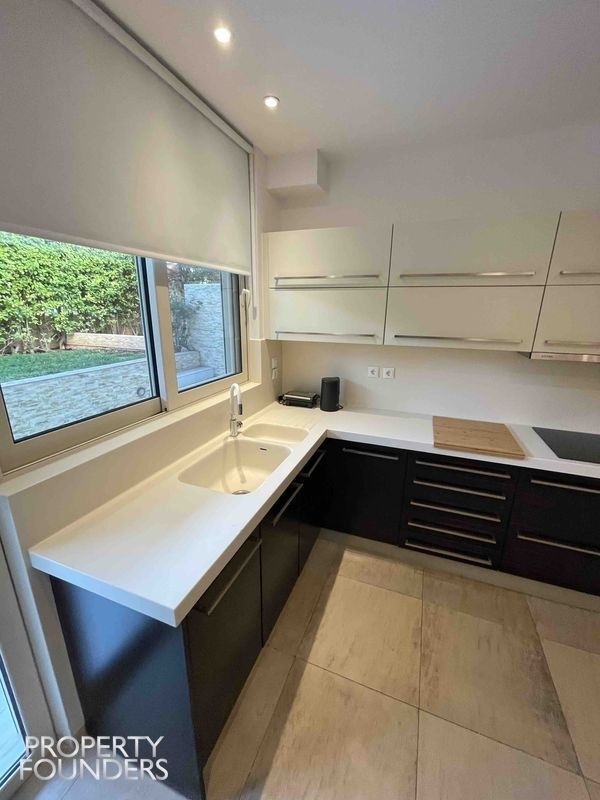 Property Founders is pleased to offer for rent a luxurious villa in Kato Elliniko with an indoor pool and sea view. The minimal fully furnished property has 4 bedrooms, 4 bathrooms, large equipped kitchen and garden with bbq. In addition, it has a lift, an alarm and a closed parking space. In a quiet area but also quite close to the bustling city of Athens. It extends over four floors with access by an internal elevator. The location of the property on the map is indicative.