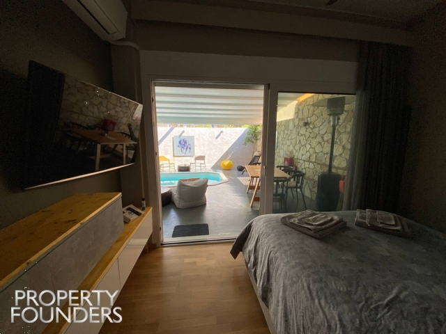 Argyroupoli, Floor Apartment For Sale, 80 sq.m., Property Status: Amazing, Floor: Ground floor, 1 Level(s), 2 Bedrooms 1 Kitchen(s), 1 Bathroom(s), Heating: Autonomous - Petrol, View: garden, swimming pool, Building Year: 1968, Energy Certificate: C, Floor type: Wooden floors + Tiles, Type of doors: Aluminum, Features: Internet Line, Electric Appliances, Balcony Cover, No shared expenses, Roadside, Bright, On Corner, AirConditioning, Swimming pool, Renovated, Suitable for Commercial Use, Price: 320.000€. PROPERTY FOUNDERS, Tel: 2168009848, email: [email protected]